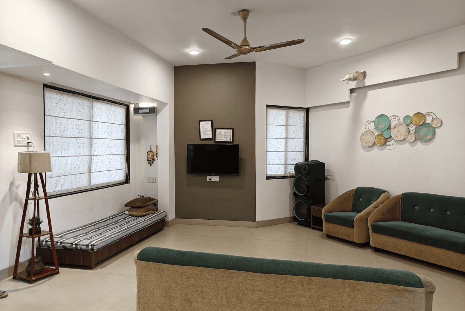 Modern amenities like flat-screen TV, power backup